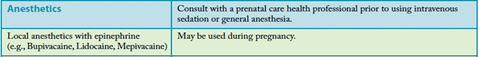 Patient: General dental care, including but not limited to routine treatment, radiographs, and local anesthesia (with and without epinephrine), is considered safe at any point during pregnancy. Emergency treatment, such as extractions and root canals, can be safely performed during pregnancy. More complex cases that involve general surgery should be delayed until after delivery. 1,3,4 Use clinical judgement at the discretion of supervising faculty